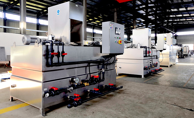 The automatic flocculant dosing system (also called Polymer doser, polymer makeup system, polymer preparation unit, etc.) adopts the PLC control method, which pioneered the integration of fully automatic adjustment of pharmaceutical concentration, automatic dosing, dissolution, and dosing, achieving a breakthrough in continuous unmanned operation; significantly reducing the cost of design, construction, operation and maintenance.